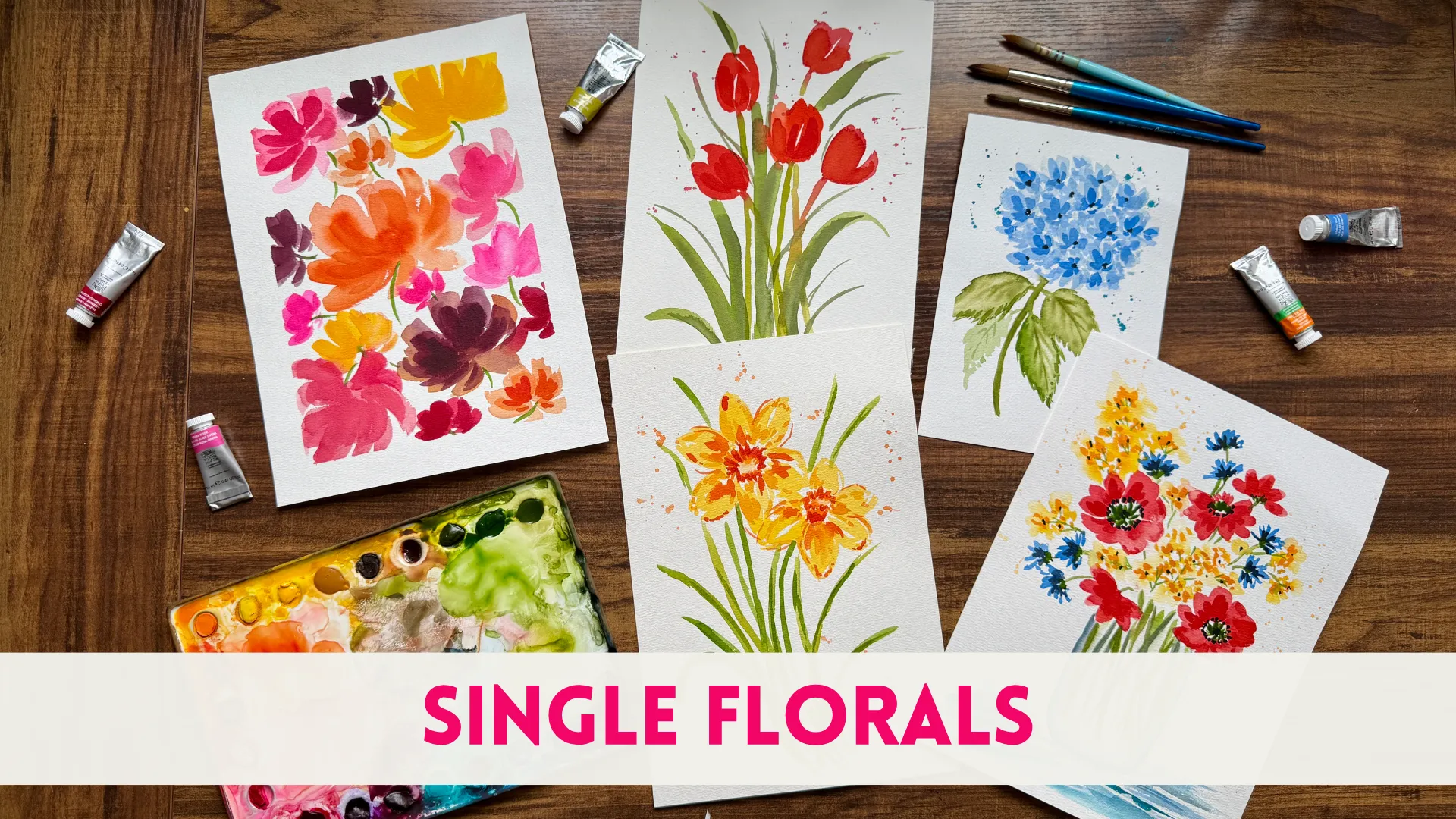 My mastercourse is filled with tips and exercises building on a specific watercolor composition. Not only will each one be aimed at teaching you specific watercolor skills, but you will also learn different ways to practice self-care and relax whenever you pick up your paintbrush.